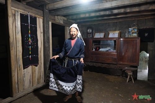 | ក្នុងសកម្មភាពប្រចាំថ្ងៃ ជនជាតិ Dao Tien នៅតែស្លៀកពាក់តាមបែបប្រពៃណីរបស់ពួកគេ |