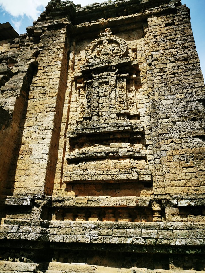 ប្រាសាទស្រីគ្រប់លក្ខណ៍ មានក្បាច់រចនាយ៉ាងល្អប្រណីត ថ្វីត្បិតតែត្រូវរបេះជ្រុះ ឬរលុបសឹងទាំងអស់ក៏ដោយ ។ បូជនីយដ្ឋាននេះដែលដំបូលត្រូវរលំបាក់ មានមុខបែរទៅទិសខាងកើត ហើយដូចទីតាំងស័ក្តិសិទ្ធផ្សេងៗឯទៀត ក្នុងសម័យចេនឡាដែរ ប្រាសាទមានទ្វារបញ្ឆោត៣គឺ នៅខាងលិច ត្បូង និងជើង ។ នៅលើជញ្ជាំងទាំង ៤ ទិសនៃប្រាសាទ គេឃើញមាន សសរពេជ្រតូចៗធ្វើអំពីឥដ្ឋ លើកលែងតែទ្វារពិត ដែលមានសសរពេជ្រធ្វើពីថ្មភក់ពីរទ្រក្បាច់ផ្តែរ និង មានរាងក្បាច់ផ្កាជាបន្ទាត់កោង ។ នៅតាមស៊ុមទ្វារនីមួយៗ មានក្បាច់វិមានអាកាសតូចៗពីរទាំងសងខាង ។