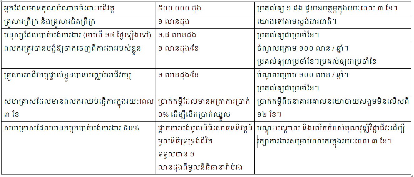 ៦ ក្រុមគោលដៅនឹងចូលរួមក្នុងកញ្ចប់ជំនួយចំនួន ៦២ សែនកោដិដុងពីរដ្ឋាភិបាល