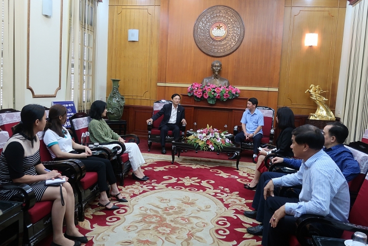 លោក Hau A Lenh អនុប្រធាន –អគ្គលេខាធិការ នៃ គណៈកម្មាធិការមជ្ឈិមរណសិរ្សមាតុភូមិវៀតណាម (ខាងស្តាំ) ទទួលជួបអនុប្រធានអចិន្ត្រៃយ៍សមាគមមិត្តភាពវៀតណាម - ជប៉ុន លោក Bui Khac Son ។