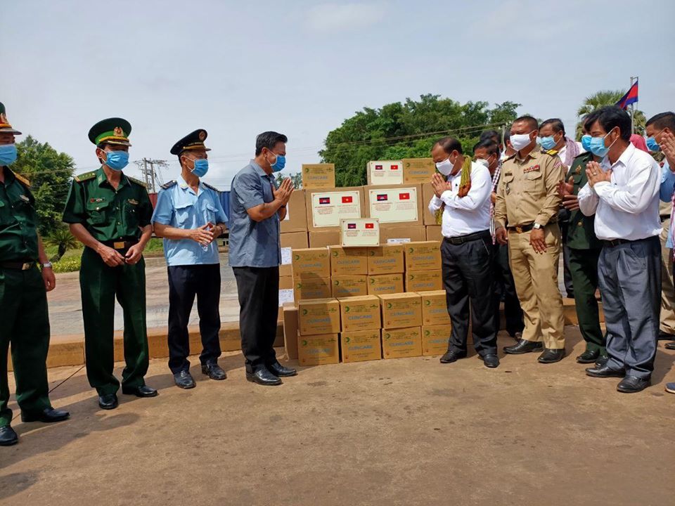 ក្នុងពិធីប្រគល់ទទួលម៉ាស់ និងអាកុលនោះ ធ្វើឡើងស្ថិតនៅមាត់ច្រកទ្វារព្រំដែនអន្តរជាតិត្រពាំងផ្លុង ខេត្តត្បូងឃ្មុំ